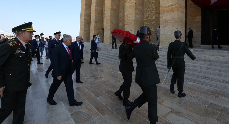 Başbakan Yıldırım´ın, Atatürk´ün mozolesine çelenk bırakmasının ardından, saygı duruşunda bulunuldu.