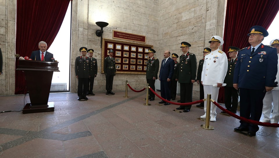 Kritik toplantı öncesi şura üyeleri, Anıtkabir´i ziyaret etti. Yıldırım, Anıtkabir´e gelişinde, Aslanlı Yol´un başında komutanlar tarafından karşılandı.
