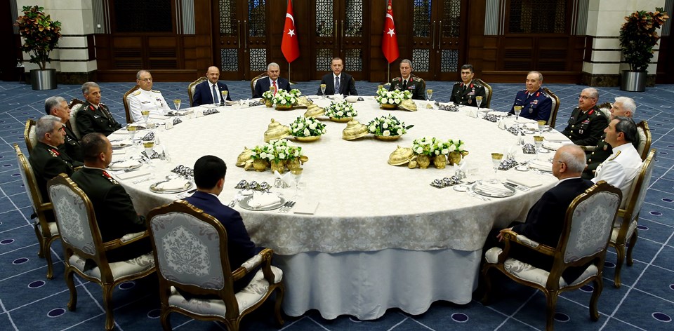 Toplantıya Hulusi Akar´ın yanı sıra; Kara Kuvvetleri Komutanı Orgeneral Salih Zeki Çolak, Deniz Kuvvetleri Komutanı Oramiral Bülent Bostanoğlu, Hava Kuvvetleri Komutanı Orgeneral Abidin Ünal, Jandarma Genel Komutanı Orgeneral Galip Mendi, Genelkurmay İkinci Başkanı Orgeneral Yaşar Güler, 1. Ordu Komutanı Orgeneral Ümit Dündar, 3. Ordu Komutanı Orgeneral İsmail Serdar Savaş, Ege Ordu Komutanı Orgeneral Abdullah Recep ve Donanma Komutanı Oramiral Veysel Kösele katıldı.