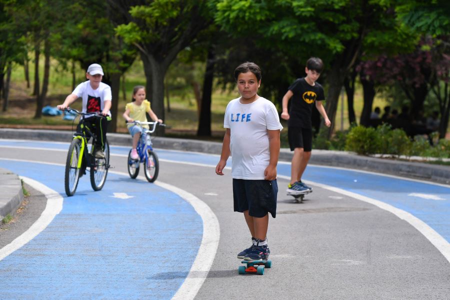 Üç şerit halinde bin 500 metre uzunluğunda bisiklet yolunun yanı sıra yürüyüş ve koşu yollarının da yer aldığı parkta, her yaş grubuna hitap eden bisikletler Büyükşehir Belediyesinden uygun fiyatla kiralanabiliyor.